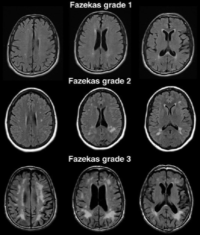 Шкалу Fazekas используют для простой оценки тяжести поражения белого вещества головного мозга по количеству и размеру гипертенсивных очагов лейкоареоза в белом веществе на Т2-взвешенных изображениях. Обычно такие очаги связывают с болезнью мелких сосудов головного мозга, хотя очевидно, что не все такие очаги обусловлены именно этим.